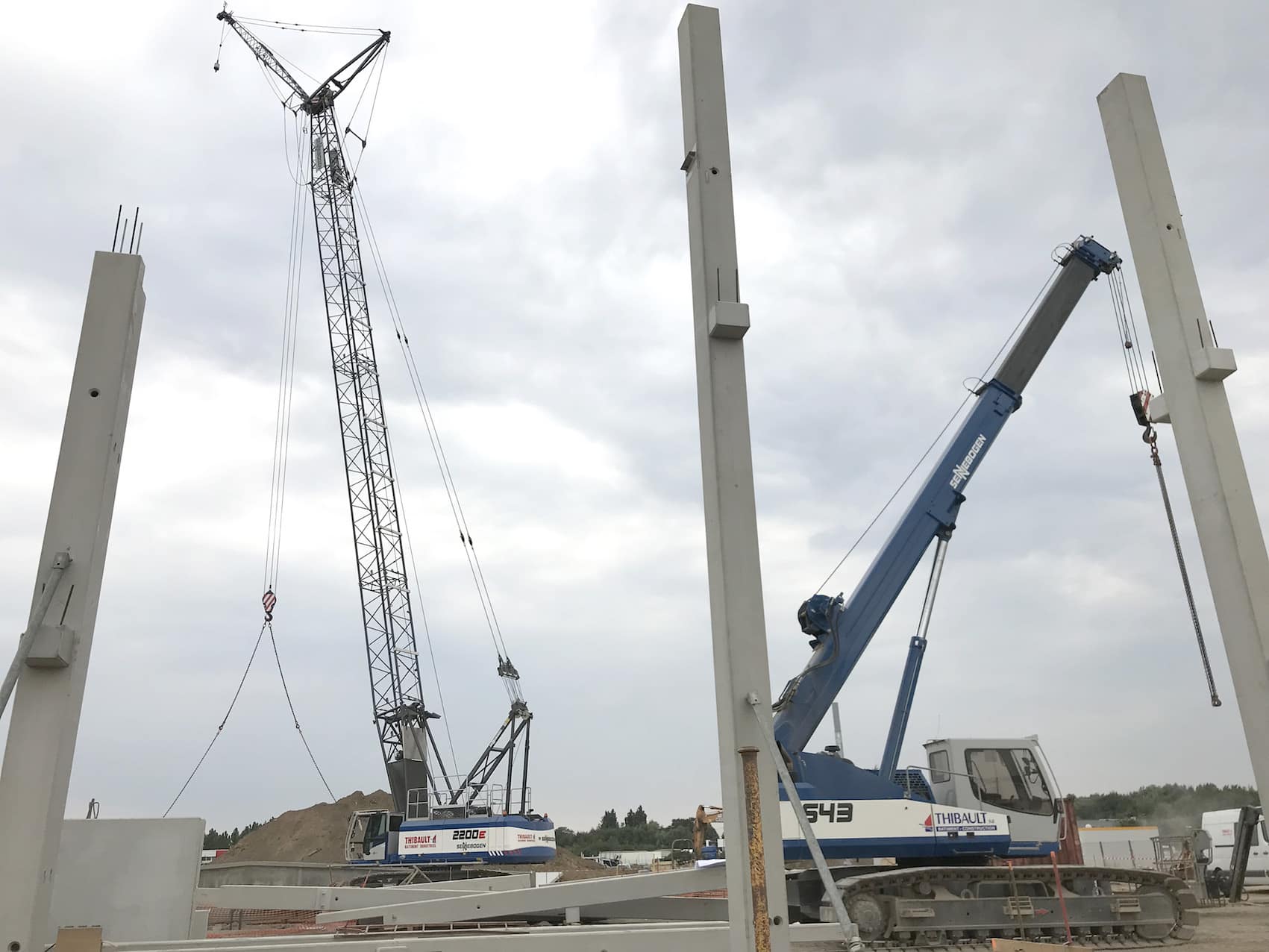 Sygmat vient de livrer une nouvelle grue treillis Sennebogen à la société TBI (Thibault Bâtiment Industriel), une 2200R-Série de, de 80 tonnes de capacité. Elle est actuellement mobilisée sur le chantier du futur centre d’affaires « Parc Vendôme 2 » à Lesquin, dans l’agglomération lilloise. Equipée d’une flèche de 40 m surmontée d’une volée de 13 m, elle permet de lever et positionner les structures proposées par TBI sur la base des éléments préfabriqués Willy Naessens : « Dans cette configuration, on peut lever jusqu’à 5,5 t à 27 m de portée indique David Baussard, le chef de chantier et opérateur de la grue. La nouvelle cabine MaXcab 2 n’est plus longue que de quelques centimètres, mais son agencement intérieur optimisé rend l’espace de conduite encore plus ergonomique et confortable ». Cette nouvelle grue est la seconde de la marque à rejoindre le parc de TBI, qui avait déjà une 2200 R dans son parc.