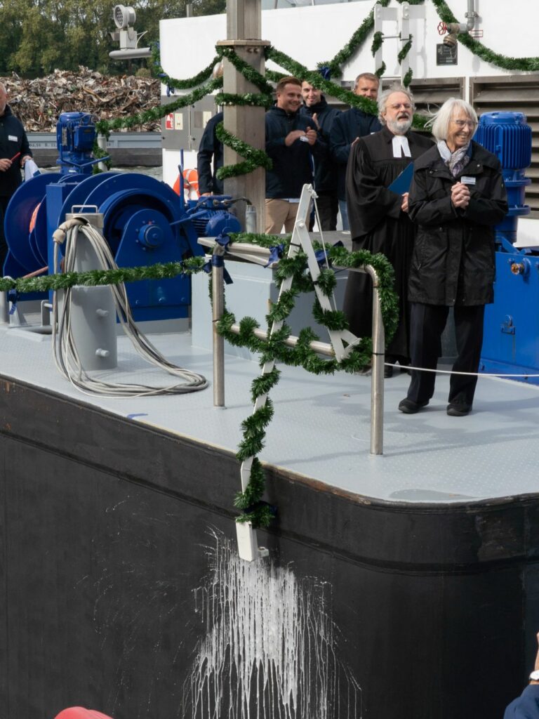 Avec le baptême de la péniche hybride « Mannheim » à Duisbourg, Rhenus et Contargo présenté un navire innovant qui établit de nouvelles normes pour le transport fluvial.