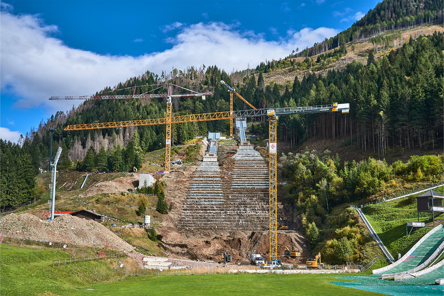 Neuf grues à tour Liebherr participent à la construction de deux sites olympiques majeurs à Predazzo et Milan. Ces équipements, fournis par le distributeur Niederstätter AG, jouent un rôle clé dans la réalisation à temps des infrastructures sportives des Jeux de Milan-Cortina 2026.