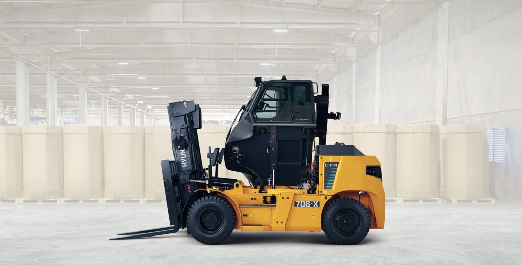 Lancée en septembre 2025, la série B-X propose des chariots élévateurs électriques haute tension fonctionnant de 309 à 348 V, offrant des performances comparables à celles d’un moteur diesel, sans émission. La capacité de charge s’étend de 4 à 9 tonnes, avec des modèles jusqu’à 18 tonnes prévus pour 2026.