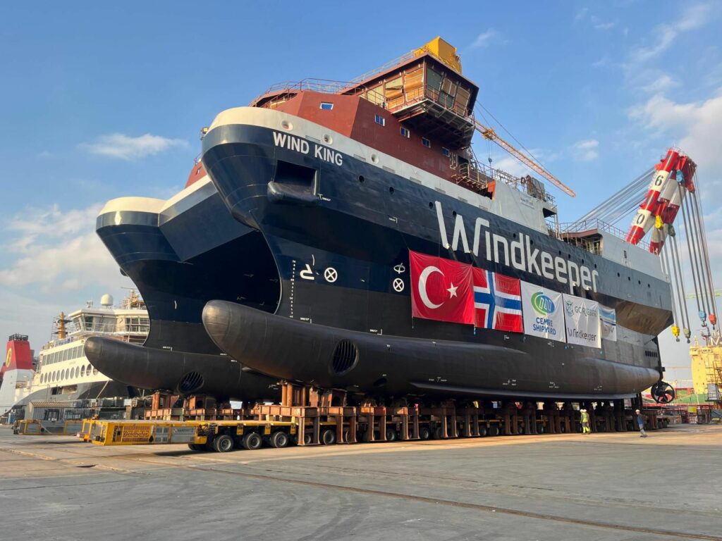 Le catamaran WIND KING « WindKeeper » n’est pas un navire comme les autres. Avec ses 60 mètres de long, 23 mètres de large et 30 mètres de haut, il pèse 1 900 tonnes, un chiffre qui évoque autant la puissance que la précision nécessaire pour le manœuvrer.