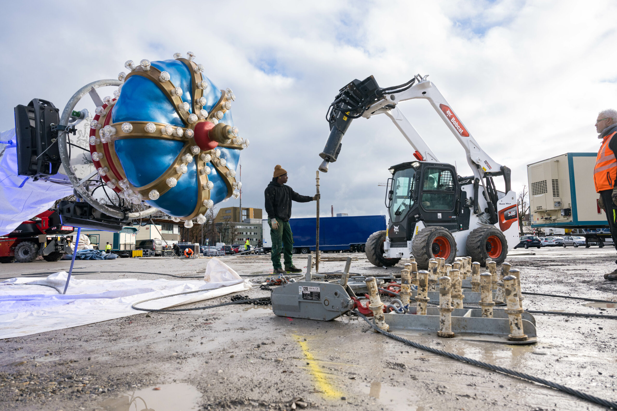 Chaque escale est un défi : herbe, gravier ou bitume, le chapiteau, un géant de 10 000 m², doit tenir bon. Pour cela, 300 ancrages en fer de 1,5 m sont plantés dans le sol. Une mission autrefois lente et laborieuse, désormais transformée en démonstration de puissance et de précision.