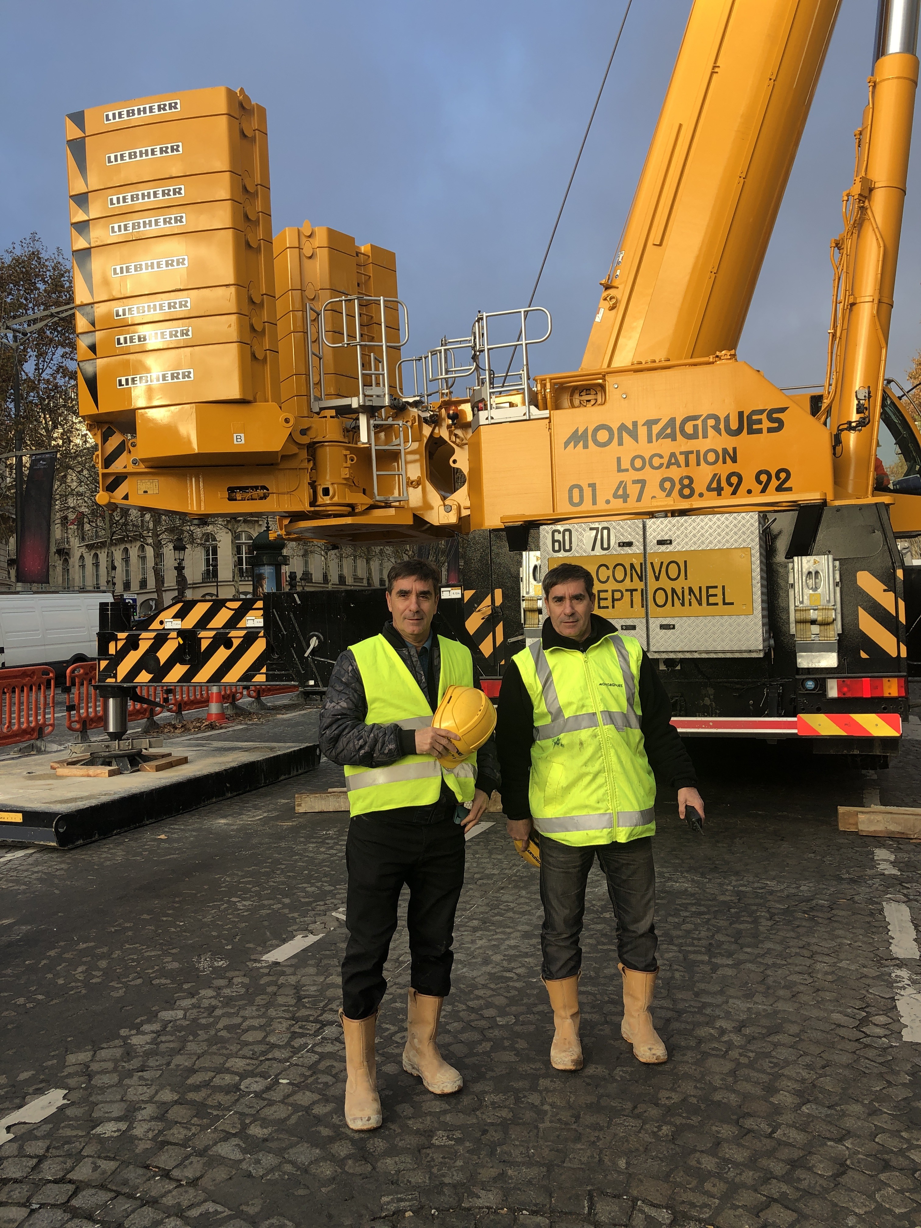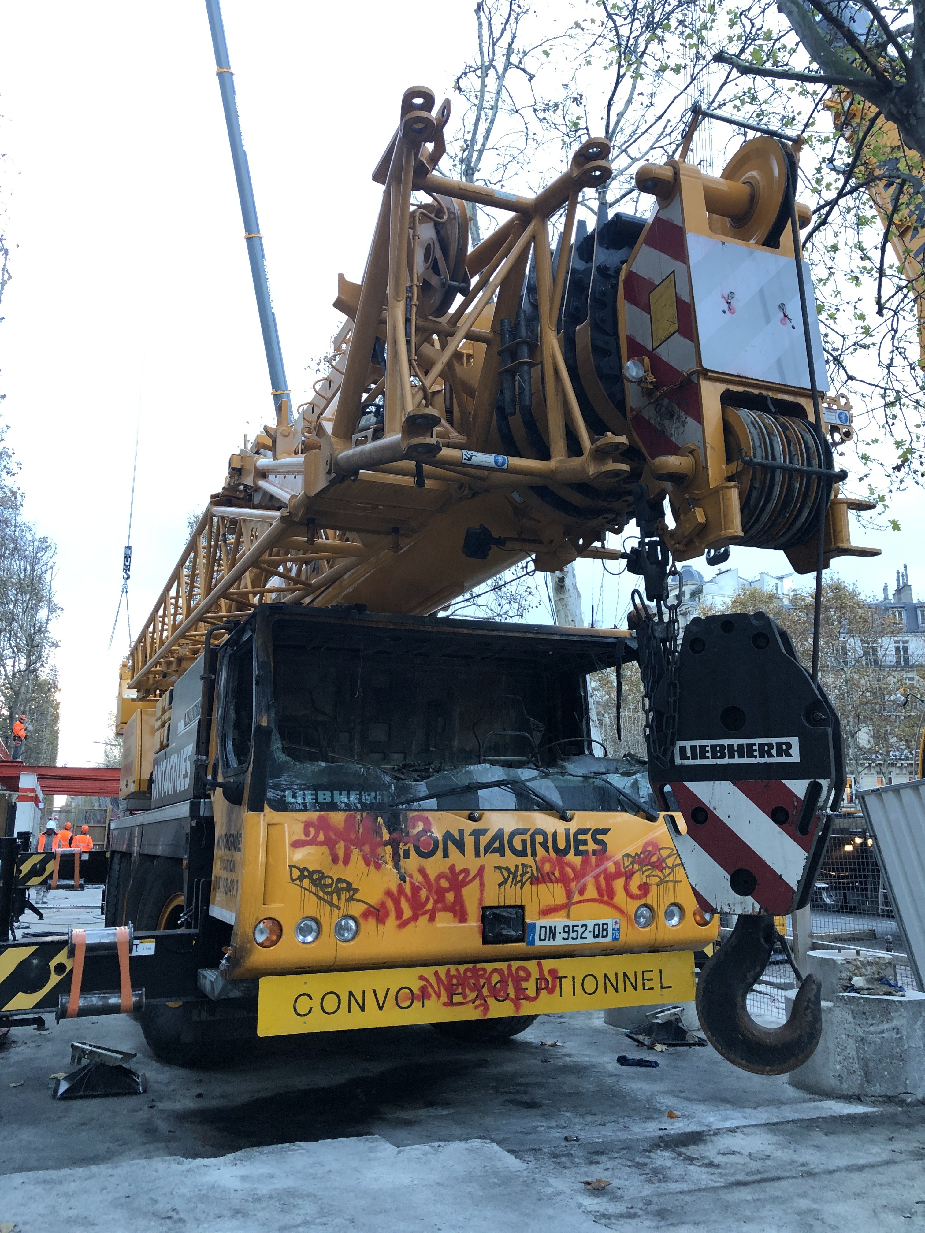 Paris s’est réveillé vendredi matin avec la 450 tonnes Montagrues sur les Champs Elysées pour lever et emmener leur grue de 70 tonnes endommagée lors des  affrontements sur la plus belle avenue du monde ! Un levage minutieusement préparé par Jean marc et Pierre Chauffour et toute leur  équipe ! Très belle opération , spectaculaire et pleinement réussie ! Tous les détails dans le prochain JDL Mag !